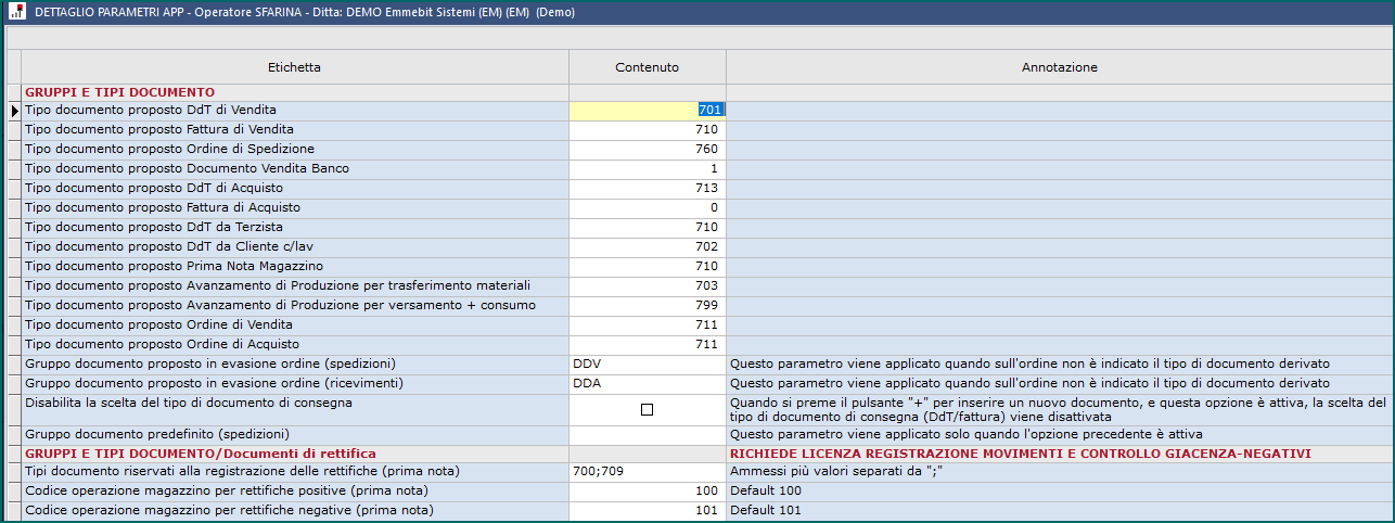 Logistica Lite dispone di una nutrita serie di parametri che consentono di modificare il comportamento della App e di definire specifici controlli.