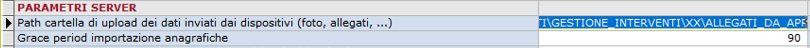 Path cartella di upload dei dati inviati dai dispositivi; è bene che il path indicato coincida con il percorso definito al paragrafo