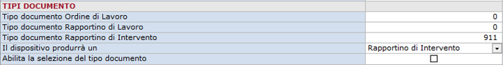 - Tipo documento Rapportino di Intervento. Indicare il codice del tipo documento RdI predefinito da utilizzare sulla app