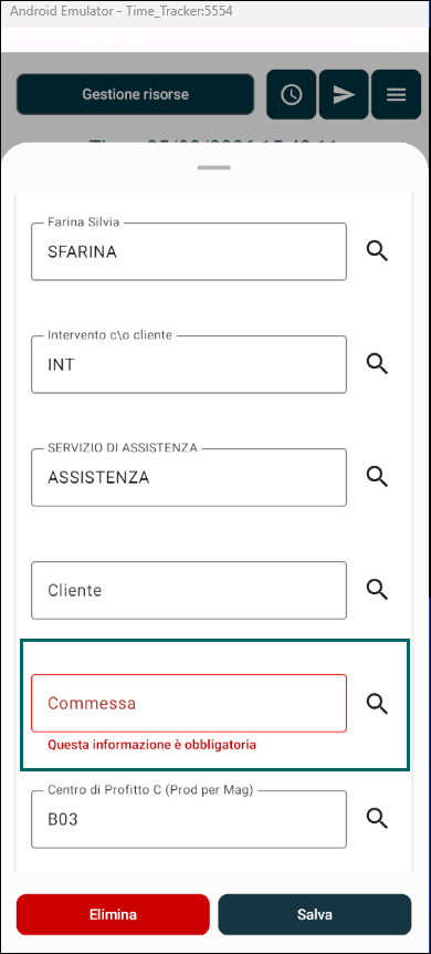 Commessa obbligatoria | Prestazioni | Abilita / Disabilita | Se il parametro è attivo non è possibile salvare una registrazione senza indicare la commessa a cui è collegata: |