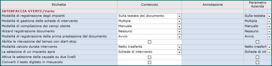 | Il parametro definisce come gestire le Schede di intervento su un documento: