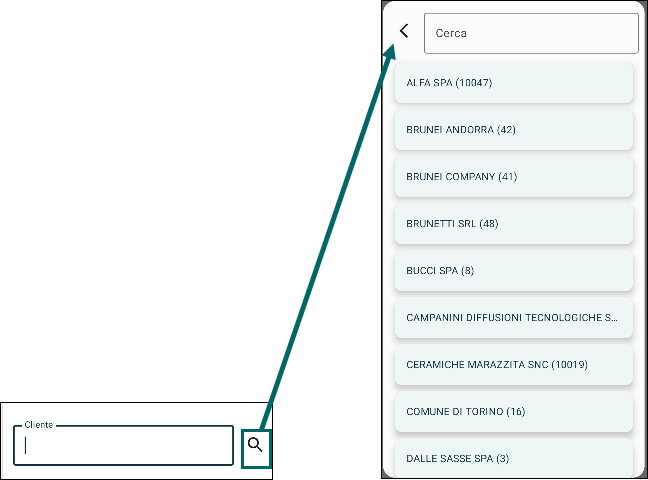 Viene effettuata posizionandosi nel campo da compilare e digitando il valore del codice da cercare
