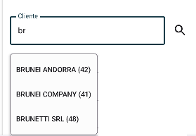Viene effettuata posizionandosi nel campo da compilare e digitando le prime lettere del valore da ricercare; Time tracker effettua una ricerca incrementale sul contenuto del campo e visualizza un elenco contestuale dei primi valori coerenti con la selezione effettuata: